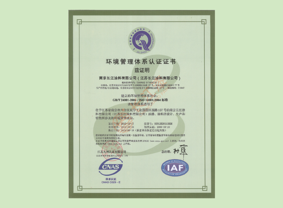- 环境管理体系认证证书