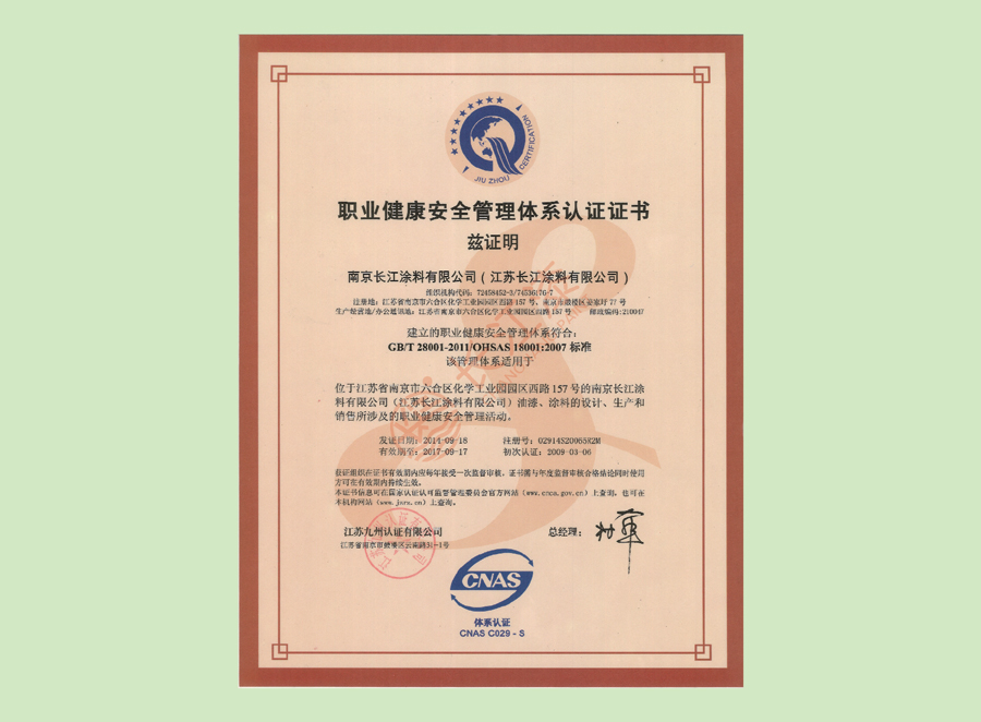 - 职业健康安全管理体系认证证书