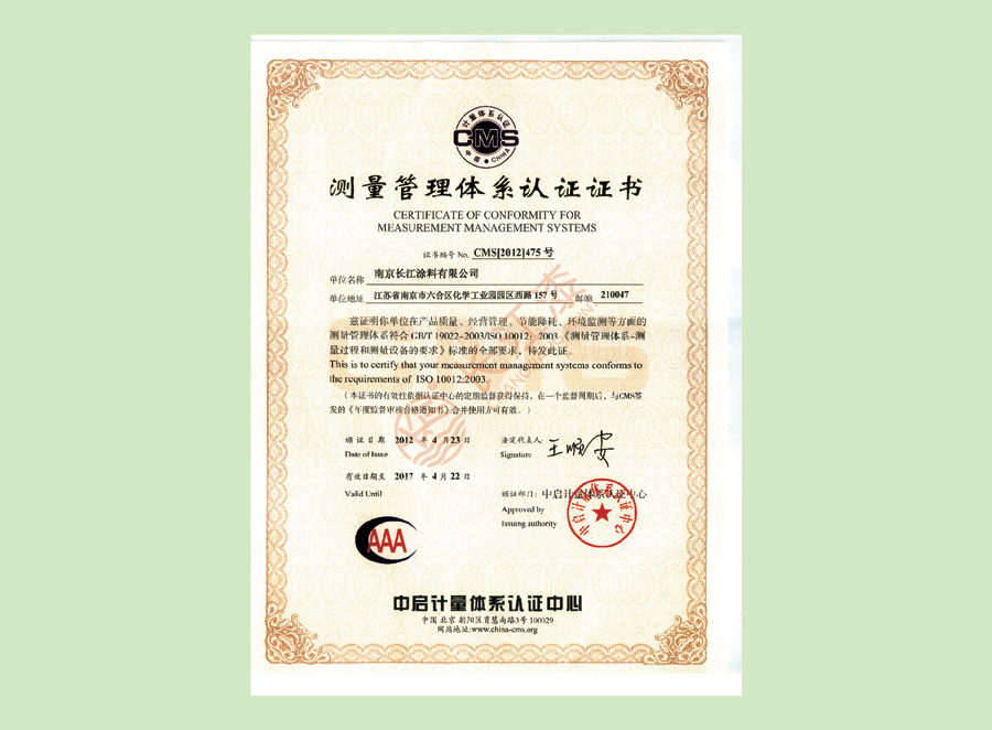 - 测量管理体系认证证书