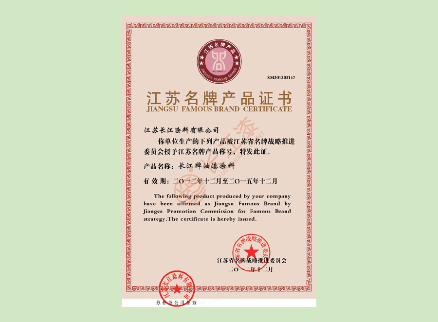 - 江苏名牌产品证书