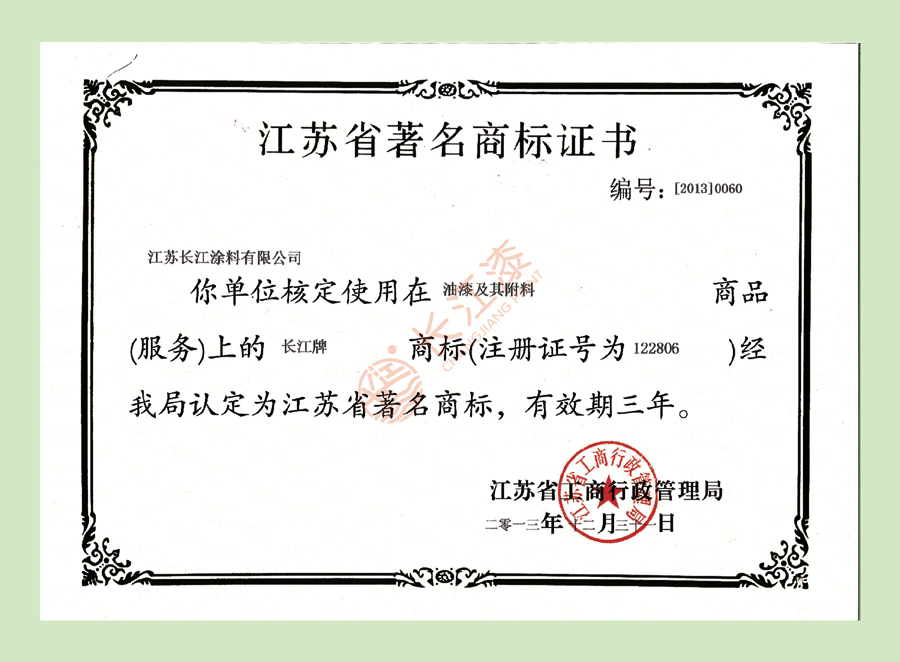 - 江苏省著名商标证书