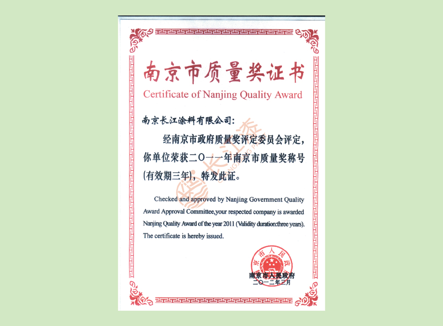 - 南京市质量奖证书