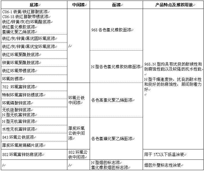 防腐漆常用产品配套 >> 底漆+中间漆+各色氯化聚烯烃面漆