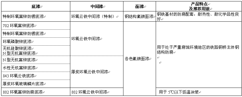 防腐漆常用产品配套 >> 底漆+中间漆+氟碳面漆(氟碳漆)