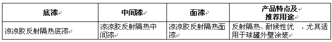 有反射隔热作用,同时具有优良的耐候性能,适用于夏季及高温环境条件下各类化工原料罐、液化气罐、储油罐、危化品运输车罐体等露天搁置的设备及构件的隔热面涂。