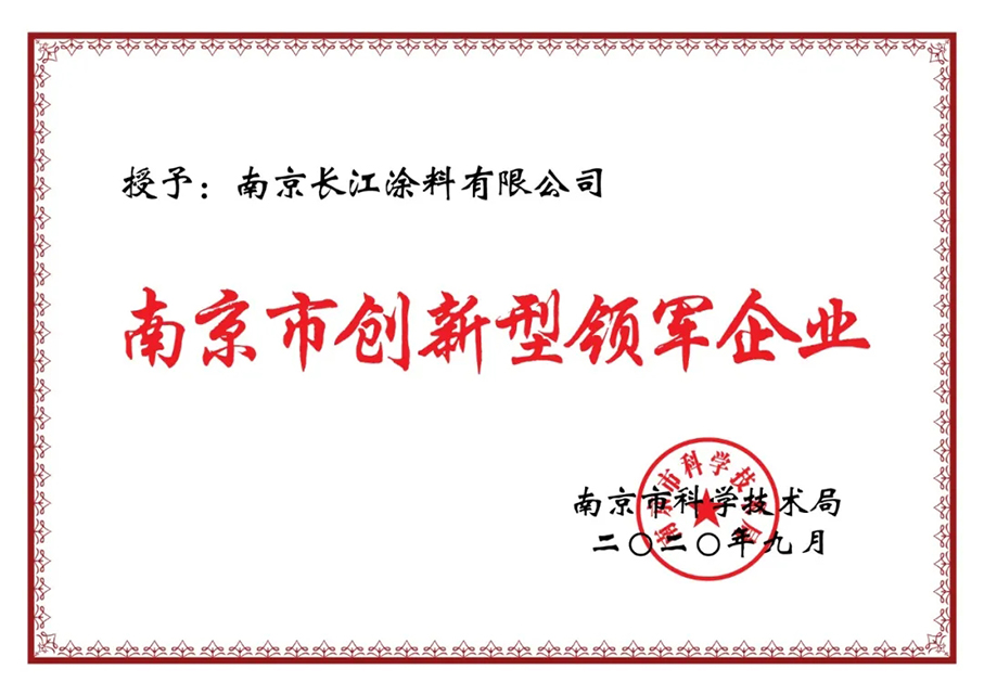 作为国家高新技术企业,长江涂料始终坚持以技术创新为核心引擎,重视科技研发与创新。公司每年投入近千万元科研经费开展涂料研发,创造出多项自主知识产权和国内领先水平的技术和产品。仅2019、2020两年,公司就有9项新产品获得发明专利授权。此次入选“南京市创新型领军企业”正是市科委对我公司技术实力及创新能力的充分肯定。